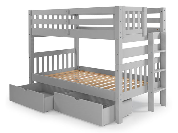 Bunk Bed Twin over Twin End Ladder + 2 Drawers, Gray