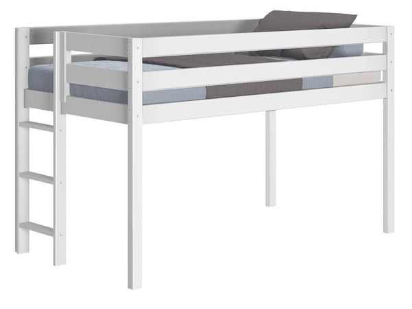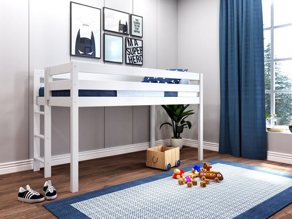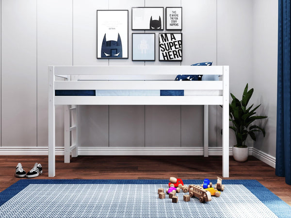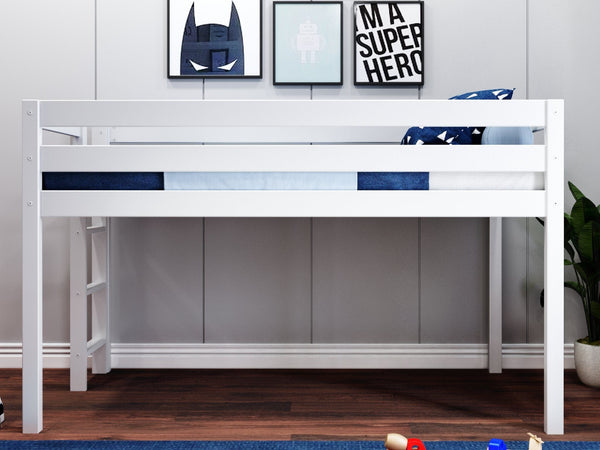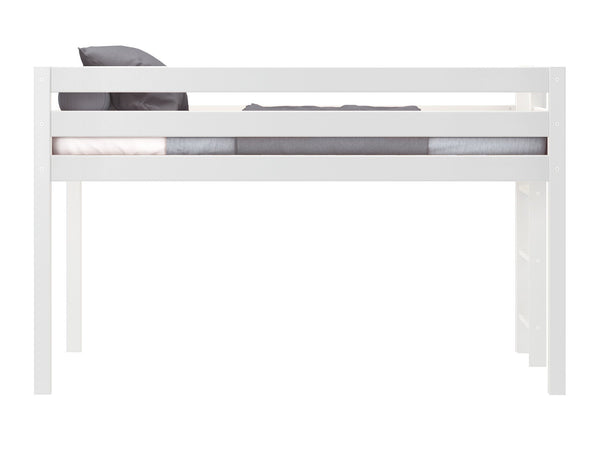 JACKPOT! Contemporary Low Loft Twin Bed with End Ladder, White